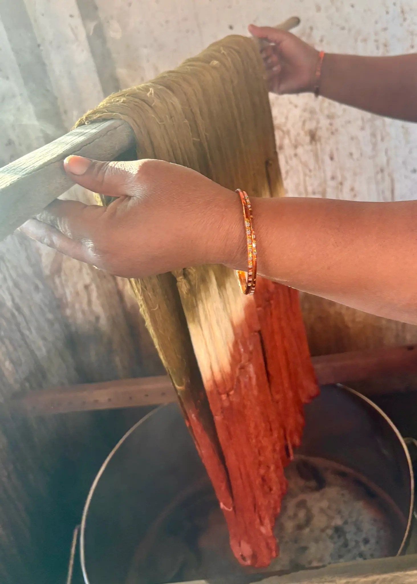 Each piece is dyed organically and slowly, guided by patience, experience, and the wisdom of nature, together with the skill of local artisans.